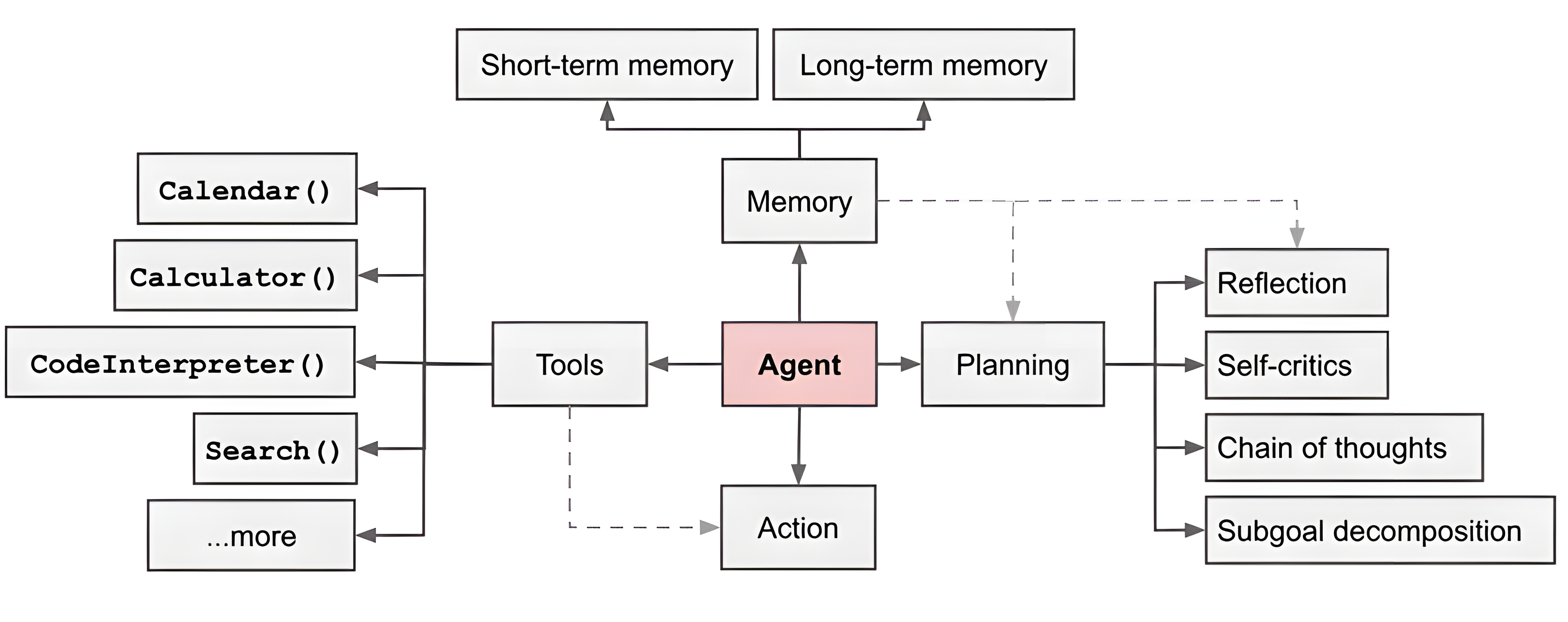 Ein KI-Agent besteht aus mehreren Komponenten, die zusammenarbeiten, um Aufgaben effektiv zu erfüllen: